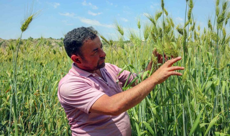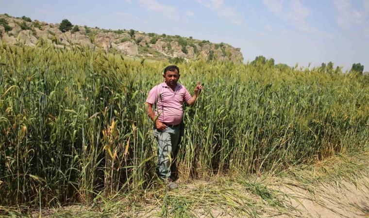 Afyonkarahisar’ın İhsaniye ilçesinde ata buğdayı ile ekim yapan bir çiftçi, boyu 2 metreye yaklaşan buğdayın hasadını gerçekleştirirken, dekar başına yaklaşık 1 ton verim elde edildi.