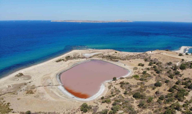 Sıcaklık ve tuzluluğun artmasından dolayı ’dunaliella salina’ (su yosunları) adlı mikroskobik bitkisel canlının fazla üremesi nedeniyle ortaya çıkan pembe ve kırmızıya yakın tonlar, göle farklı bir görünüm kazandırıyor. Özellikle Ağustos ve Eylül aylarında pembeye yakın tonlara bürünen gölde, Kasım ve Aralık aylarında bazı günlerde yaşanan ısı değişikliğiyle de aynı renk oluşuyor. Kalp şeklindeki pembe gölün yapılacak araştırma ve inceleme sonrası turizme kazandırılması planlanıyor. Pembe göl, Troya, Assos, Alexandria Troas, Apollon Smintheus antik kentlerinin ziyaretçi sayılarına olumlu katkısının olacağı varsayıldığı gibi, yeni turizm bölgeleri olarak belirlenen Kadırga Koyu, Sivrice, Sokak Ağzı, Babakale, Gürpınar ve Tuzla açısından da önemli rol oynaması bekleniyor.
