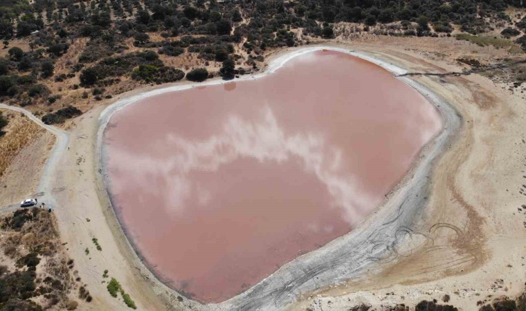 Çocukluğunda tuz gölü olarak geçen gölün kalp şeklini aldıktan sonra renginin de pembeye dönüşmesi sonrası son 10 yıldır popüler olmaya başladığını belirten Köyü Muhtarı Sadi Çalıkoğlu, “Dünyadaki 8 gölden birisi olduğu söyleniyor. Yurt dışından ve Türkiye’nin farklı illerinden ziyaretçiler gölü ve rengini görmeye geliyor. Gölün renginin neden bu şekilde olduğu konusunda gerekli çalışmalar yapılıyor. Bu bölgenin gezi alanı olabilir mi diye yetkili makamların bir takım çalışma ve projesi var. Burası milattan önce tarihi liman olarak geçiyordu. Zamanla doğa olayları sonrası bu kalpli göl şeklini aldı. Bizim çocukluğumuz döneminde bu gölden tuz toplanıyordu. Bu rengini tuzdan biliyorduk. Ama yapılacak olan araştırma ve çalışma sonrası neden gölün kızardığını öğreneceğiz. Köye ciddi bir katkısı ve yaz, kış insanlar bu gölü görmeye geliyor. Kışın bu göl kuşların göç yolu üzerindeki uğrak noktası oluyor. Pembeye bürünen ve kalp şekli ile dikkati çeken ’Kalpli Göl’, dron ile havadan görüntülendi.