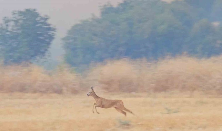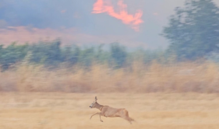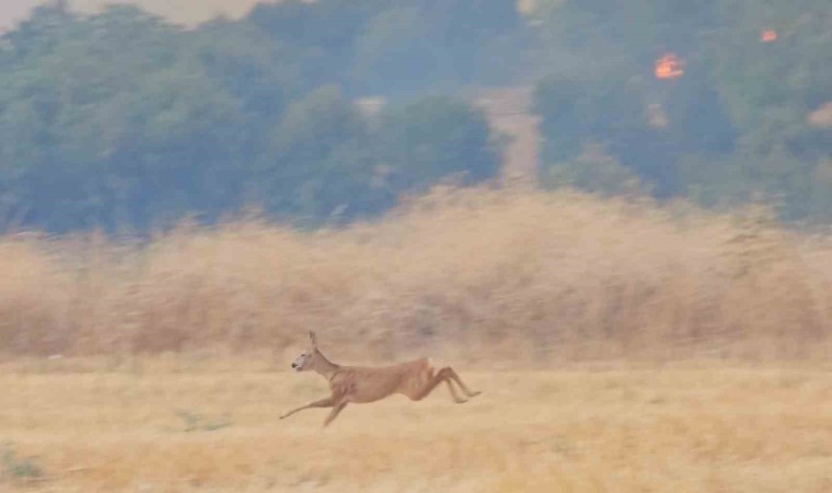 Çanakkale’de orman yangının ikinci gününde Kuş Gözlemcisi ve Yaban Hayatı Fotoğrafçısı Cenk Polat tarafından Yağcılar köyü yakınında alevlerin içinde çıkan karacanın kaçış anı kamerayla saniye saniye görüntüledi.