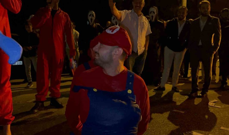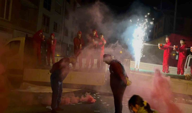 Bursa’nın İnegöl ilçesinde bir arkadaş grubu, evlenen arkadaşlarına farklı oyunlar ile 3 gün 3 gece sürecek sürecek bir işkence planı hazırladı. Düğün bitimi kolları sıvayan grup, damadı mahalle girişinde mehteran takımı ile karşıladı. Mehter eşliğinde yürüyen damadın karşısına bu sefer ‘Çığlık Maskesi’ takan bir grup çıktı. Korku maskeleri ve kostümler giyen damadın arkadaşları, evlenen arkadaşlarını ortalarına alarak çiftetelli oynadı. Çiftetelli sonrası damat ve sağdıç, korku maskeleri takan grup tarafından kaçırıldı. ‘Mario’ kostümü giyen damat ve sağdıç, bu sefer ‘La Casa De Papel’ adlı dizide rol alan oyuncuların kostümlerini giyen başka bir grup ile karşılaştı. Elleri kelepçelenen damat ve sağdıcına sürpriz bir sulu işkence başladı.