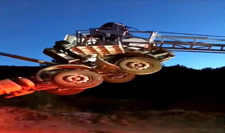 Edinilen bilgiye göre, Göveçci Mahallesinde hafriyat taşıması yapan kamyonun sürücüsü B.Ç., malzeme boşaltmak için damperi kaldırdığı sırada arka kapak açılmayınca yük arkaya bindi ve kamyon şoförle birlikte şaha kalktı. Bu sebeple sürücü araçta mahsur kaldı. İhbar üzerine olay yerine gelen itfaiye ekipleri, hidrolik merdiven yardımıyla mahsur kalan sürücüyü kurtardı.