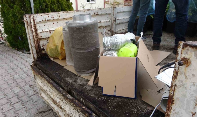 Operasyonda apartman dairesinin bir bölümünün esrar bahçesi gibi kullanıldığı görülürken evde yapılan aramada hasadı yapılıp kurumaya bırakılmış esrar, kenevir tohumu, saksılarda kenevir bitkisi, özel gübre, hassas terazi, esrar öğütme aparatı ve kenevir bitkisi yetiştirmede kullanılan özel düzenek ve aparatlar ele geçirildi.