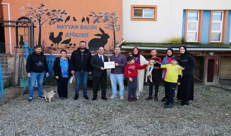 Özel öğrencilerin Yumak adını verdikleri köpek, okul bahçesinde oluşturulan hayvan bakım atölyesine yerleştirilirken, okul yönetimine can dostu sertifikası verildi.