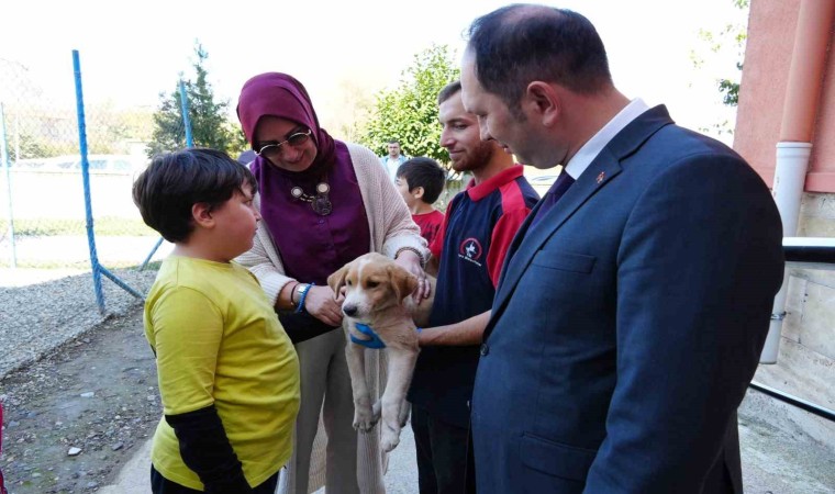 Düzce Belediyesi, yaralı, hasta ve evsiz sokak hayvanlarına sahip çıkarak Türkiye’ye örnek projelere imza atıyor. Bu kapsamda, Türkiye’nin en modern hayvan barınağı olan Sokak Hayvanları Geçici Bakımevi ve Rehabilitasyon Merkezi’nde tedavi ve rehabilitasyon süreçleri titizlikle yürütülen köpekler yeni yuvalarına kavuşturuyor. Hacı Hidayet Türkseven Özel Eğitim Uygulama Okulu Engelsiz Yaşam Merkezi, Düzce Belediyesi’nin “www.pati.duzce.bel.tr” platformu aracılığıyla hayvan sahiplenme talebinde bulundu. Bu talep üzerine, kısırlaştırılmış ve tüm aşıları ile sağlık kontrolleri tamamlanmış bir yavru köpek, Düzce Belediyesi Başkan Yardımcısı Cihan Ünal ve Veteriner İşleri Müdürü Gönül Asuk tarafından okul yönetimine teslim edildi.