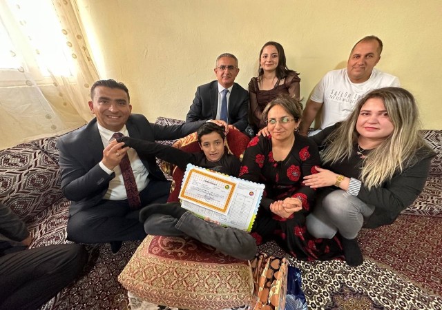 HAKKARİ'NİN YÜKSEKOVA MİLLİ EĞİTİM MÜDÜRLÜĞÜNE BAĞLI ÖZEL EĞİTİM UYGULAMA ÖĞRENCİSİ BÜNYAMİN CANTEKİN İÇİN ÖĞRETMENLERİ TARAFINDAN KARNE SÜRPRİZİ YAPILDI.
