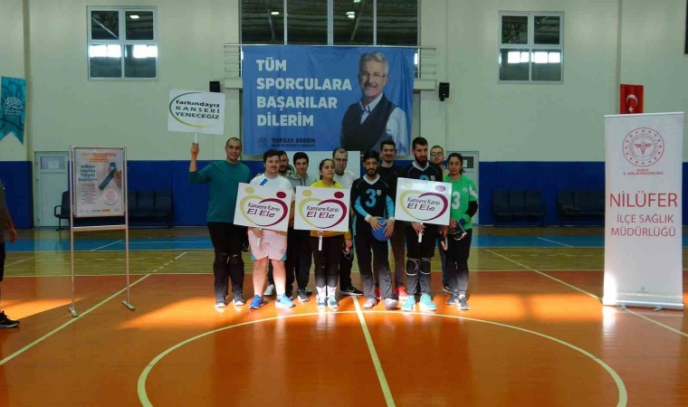 1-31 Ocak arası kutlanan Rahim Ağzı Farkındalık Ayı vesilesiyle tribünden rahim ağzı kanseri ile ilgili bilgilendirici pankartlarla karşılaşmayı izlediklerini belirten Nilüfer İlçe Sağlık Müdürü İsmail Kaba, “7-14 Ocak arası Beyaz Baston Görme Engelliler Haftası olarak kutlanmaktadır. Bizde bu hafta çerçevesinde bir etkinlik gerçekleştirmek istedik. Aynı zamanda toplumun her kesimine ulaşmak maksadıyla Sağlık Bakanlığı tarafından her yıl ocak ayında kutlanan halk arasında rahim ağzı kanseri olarak bilinen kanserin tanıtımını yapmaktayız. İki kurumun beraber organizasyonu şeklinde bir çalışma yapmak istedik. Her birimiz birer kanser ve engelli adayı. Bunun farkındalığını oluşturmak istedik. Yakın zamanda tüm kadınlarımız için geçerli olan rahim ağzı kanserinin farkındalığını oluşturmak istedik. Biliyoruz ki kanser hayatımızın önemli bir gerçeği. Kadınlarımızın bu kansere yakalanmaması için farkındalığın artması gerekiyor. Biz artık rahim ağzı kanserinden kadınlarımızı kaybetmek istemiyoruz. Sağlık Bakanlığı olarak farkındalık çalışmalarımızı toplumun her kesimine yaymaya çalışıyoruz” dedi.