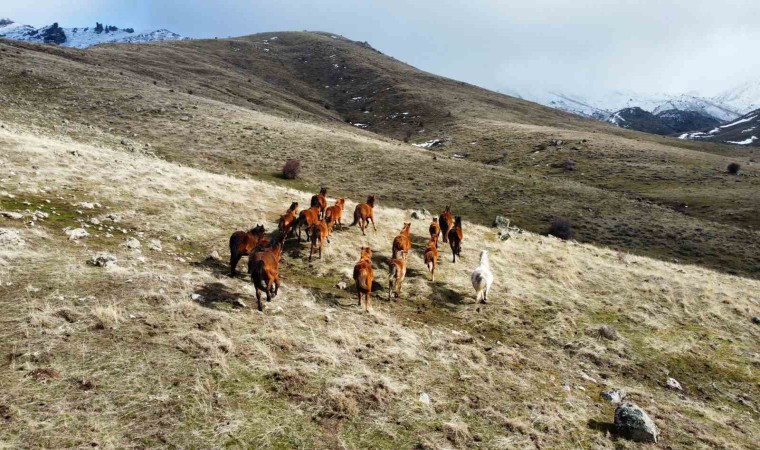 Afyonkarahisar’da bahar aylarını aratmayan sıcak havalar adeta doğanın erken uyanmasına neden olurken, yaylarda güneşi gören yılkı atları ise sürü halinde gezerken görüntülendi.