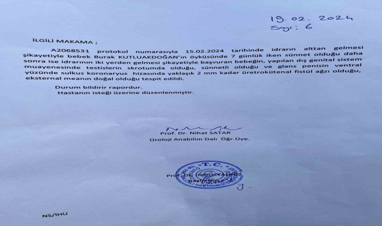 Sünnetten sonra hiçbir sorun olmadığı söylenmesi üzerine aile evlatlarını evlerine götürdü. Burak 2,5 aylık olduğunda annesi Demet, bebeğinin altını değiştirirken idrarını sünnet yaptığı dikişten de yaptığını fark etti. Bunun üzerine aile bebeklerini yine aynı hastaneye ve doktora götürdü.