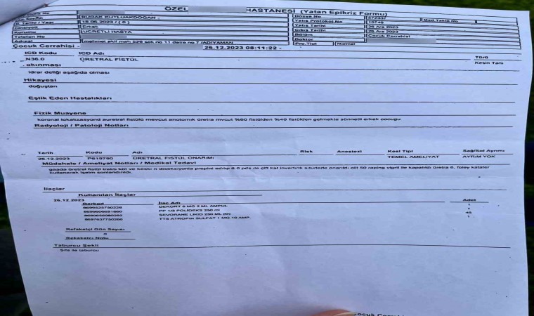 İhlas Haber Ajansı’na konuşan anne Demet Kutluakdoğan, sünnet sonrası mağdur olduklarını anlatarak, “Tamamen dini hassasiyetimizden dolayı oğlumu sünnet ettirdik. Sünnetten yaklaşık iki buçuk ay sonra oğlumun altını değiştirirken iki delikten idrar yaptığını fark ettim. Sünnet dikişlerinin olduğu hizada fazladan bir delik vardı. Hemen doktora gittik, doktor kontrol etti ve sünnette bir komplikasyon oluştuğunu, bu yüzden 6 aylık olduğunda hatasını telafi etmek için oğluma tekrar bir operasyon yapacağını söyledi. Bu süreçte doktordan herhangi bir şikayette bulunmadık çünkü hatasını kabul etti ve telafi edeceğini belirtti. Oğlumuz 6 aylık olduğunda tekrar ameliyat oldu ancak yine delik kapanmadı ve doktor başarısız oldu” diye konuştu.