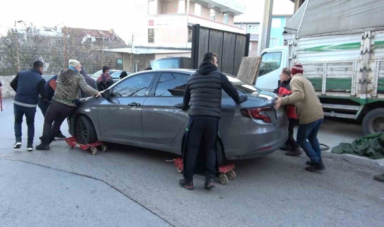 Bursa Pazarcılar Odası, esnafının en büyük problemlerinden biri olan pazar alanında unutulan araçları kaldırmak için yeni bir yöntem geliştirdi. Otomobillerin tekerleklerine yerleştirilen tekerlekli kaydıraklar yardımıyla aracın zeminden bağlantısı kesilerek taşınmaya hazır hale getiriliyor. İnsan gücü ile kolay bir şekilde hareket ettirilebilen araçlar pazar alanından çıkarılarak saniyeler içinde uygun bir alana park ediliyor. Özel yapım olan aparatların Konya’da ürettiklerini söyleyen Bursa Pazarcılar Odası Başkanı Refik Aksu, “Çok basit bir yöntem geliştirdik, araçlara zarar vermeden esnafımız yardımıyla hızlı bir şekilde Pazar alanından kaldırıyoruz. Aracı da uygun bir alana güvenli bir şekilde bırakıyoruz” diye konuştu.