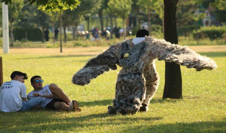 BURSA’DA ÜNLÜ TİYATRO SANATÇISI BAHTİYAR KESKİN, YARI ARI YARI KARTAL KOSTÜMÜ GİYEREK PARKLARDA UYUŞTURUCU MADDE SATIŞI YAPAN ZEHİR TACİRLERİNE GÖZDAĞI VERDİ.