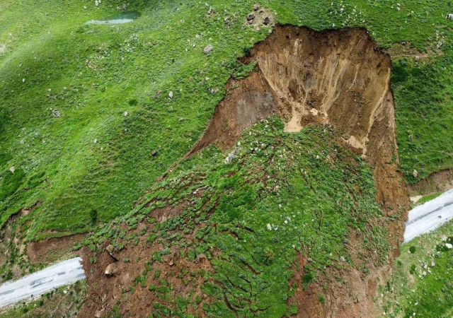 Afyonkarahisar'da, aşırı yağışların neden olduğu bir heyelan sonucu yayla yolu çöktü. Neyse ki, olayda ölen ya da yaralanan olmazken, yaklaşık 100 metre çapında bir göçük oluştu.