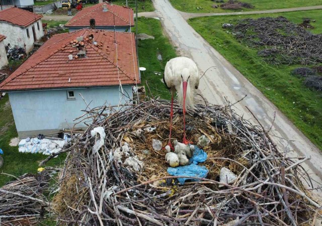 Yanmış yuvanın bulunduğu elektrik direğine göç eden leylek, burada yeni bir yuva kurdu ve bu yuvada 4 yavrusunu büyütmeye başladı. Bu inatçı ve sevgi dolu leylek, köyün bir parçası haline gelmiş durumda.