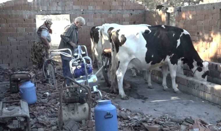 Ali Tüfekçi ise, hayvanlarının sütünü alışkın oldukları damdan başka bir yerde sağamıyor. Sabah saatlerinde hayvanlarını yanan dama getirerek burada süt sağma işlemini gerçekleştiren Tüfekçi, "10 tane ineğimiz var. 10 tane de keçimiz vardı ama 5 tanesi kayboldu ya da yandı. Geriye dönmediler. Yangında samanlarımız, damımız yandı. Arpa vardı bir kısmı yandı. 10 dönüm biçilecek yerim vardı, orası da yandı. Yangında ineklerimizde telef olan yok. Kurtardık ineklerimizi. İneklerimiz yanan bu hayvan damımıza alışkın, komşunun yerinde ineklerimizi sağamadık. O yüzden alışkın oldukları bu hayvan damımızda sütlerini sağıyoruz. Bugün de geldik, hayvan damımızda sütlerimizi sağdık. Temizlik yaptık. Damımızın üstünü de zamanla yapacağız. Devletimizin yetkilileri de yardıma geliyor" dedi.