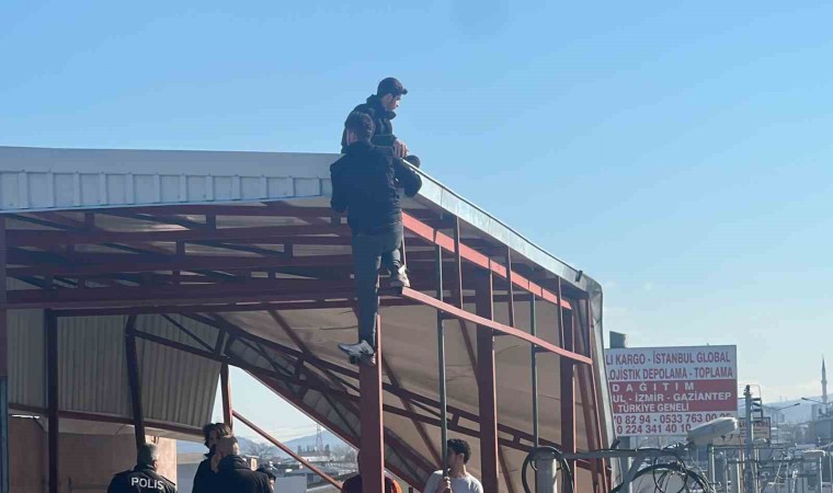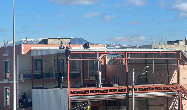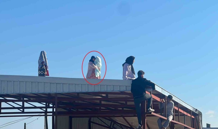 İş makinesinin yıkım için hareket ettiği sırada kucağında bebekle çatıya bir kadının çıktığı farkedildi. Ardından bu kadına aynı aileden oldukları tahmin edilen 4 kişi daha destek vermek için çatıya çıkıp demirlere tutundu.
