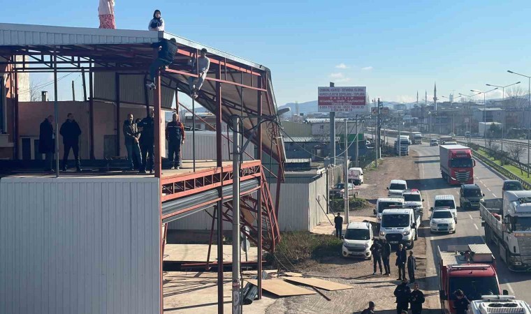 Bursa’da kaçak yaptıkları binayı yıkmaya gelen ekiplere kucağındaki bebeği ile çatıya çıkarak direnç gösteren kadın ile beraberindeki 4 akrabası uzun süren uğraşlar neticesinde güçlükle ikna edildi.