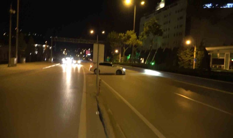 Fakat ön tarafta da trafik ekiplerini gören kişi bu kez de ters yöne girip geri manevra yaparak kaçmak istedi. Polisin defalarca yaptığı ‘dur’ ikazlarına rağmen ilerleyen sürücü, önce havaya açılan uyarı ateşine de aldırış etmedi. Son çare olarak lastiğe kontrollü şekilde ateş eden polis, ters yönde kaçan şüphelinin peşine düştü. Yakın çevredeki bir ara sokakta aracı park halinde bulan ekipler, sürücünün yaya olarak kaçtığını tespit etti. Polis ekiplerince, ters yönde ilerleyip kaçarken defalarca drift atan sürücüye yaklaşık 100 bin lira idari ceza uygulanırken, araç ise trafikten men edildi. O anlar kameraya anbean yansıdı.