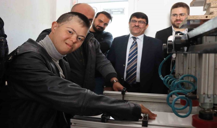 Kayseri’de özel eğitim gören öğrenciler, mobilya atölyesinde ustalık yaparak kesim ve birleştirme işi yaptı.