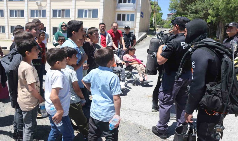 Güroymak’ta rehabilitasyon okullarında eğitim gören 24 öğrenci, öğretmenleri eşliğinde Bitlis Emniyet Müdürlüğüne bağlı Tatvan’daki polis kampına getirildi. Burada öğrencilere dalgıçlık ve dalış malzemeleri hakkında bilgilendirmeler yapıldıktan sonra bota bindirilerek can yelekleri giydirildi. Gerekli güvenlik önlemlerinin alınmasının ardından Bitlis Emniyet Müdürlüğü Koruma Şubesine bağlı Sualtı Grup Amirliğine tahsis edilen “Şehit Çarşı ve Mahalle Bekçisi İsa Budak” kontrol botuna bindirilen öğrencilere Van Gölü’nde gezi yaptırılarak çeşitli ikramlar ve hediyeler verildi.