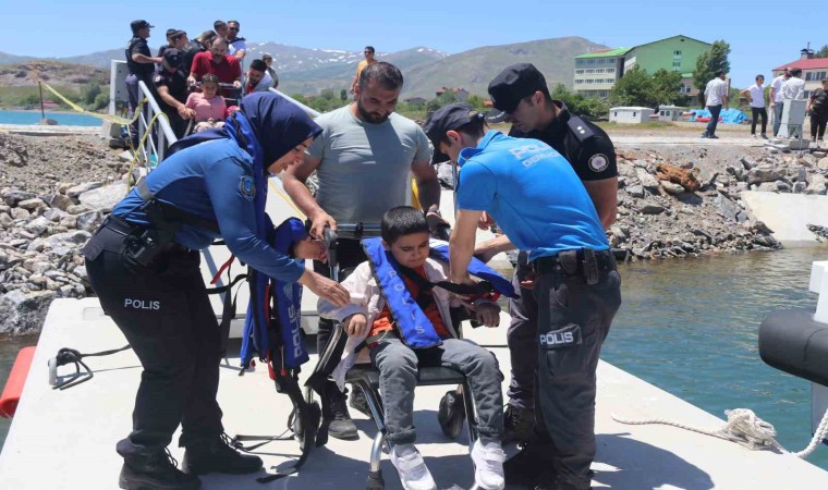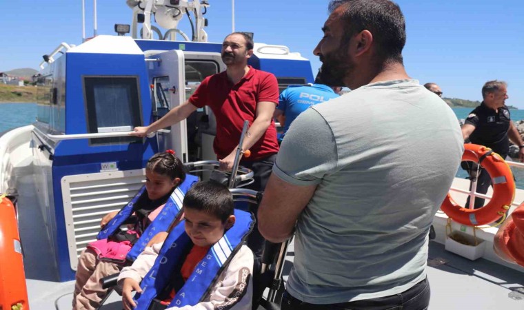 Bitlis’in Güroymak ilçesindeki Gölbaşı Ortaokulu koordinesinde başlatılan proje kapsamında 24 özel gereksinimli öğrenci için polis botuyla Van Gölü’nde gezi düzenlendi.