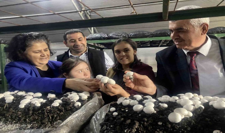 Antalya’nın Aksu ilçesinde 3 Aralık Dünya Engelliler Günü dolayısıyla Aksu’da öğrenim gören özel öğrenciler, tarım lisesi öğrencilerinin ürettikleri mantarları ve sebzeleri birlikte topladı.