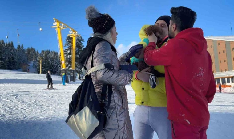 Kış turizminin en önemli merkezlerinden biri olan Uludağ’da kayak yapan profesyonel bir kayakçı, kayak pistinde yürüyen köpeğe çarptı. Genç kayakçı yürümekte zorluk çeken köpekten ve sahibinden özür diledi.