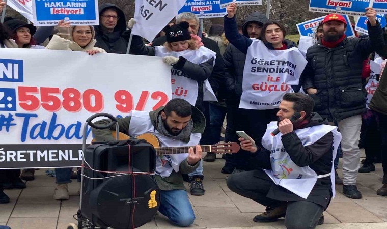 Özel Sektörde çalışan öğretmenler; taban maaş hakkının geri verilmesi, insani şartlarda ücretlere çalışmak, fazla mesai saatleri ücretlerinin verilmesi gibi özlük haklarının iyileştirilmesi için Ankara Milli Egemenlik Parkı’nda bir araya geldi.