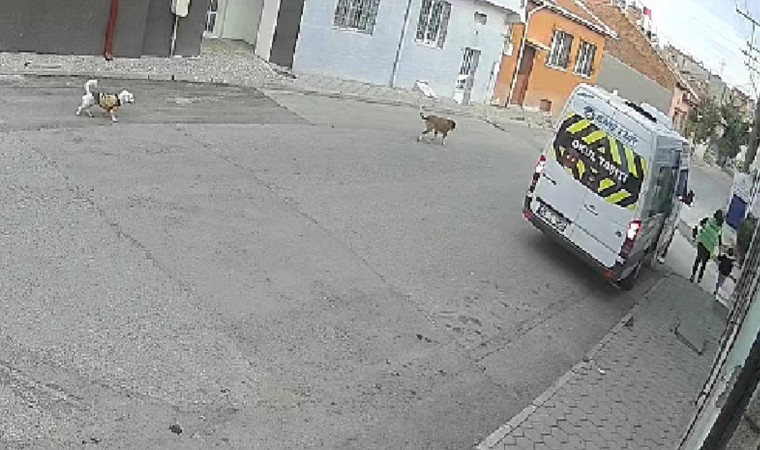 Eskişehir’de bir servis minibüsünün yolda yatan köpeği ezip kaçtığı anlar güvenlik kamerasına yansıdı.