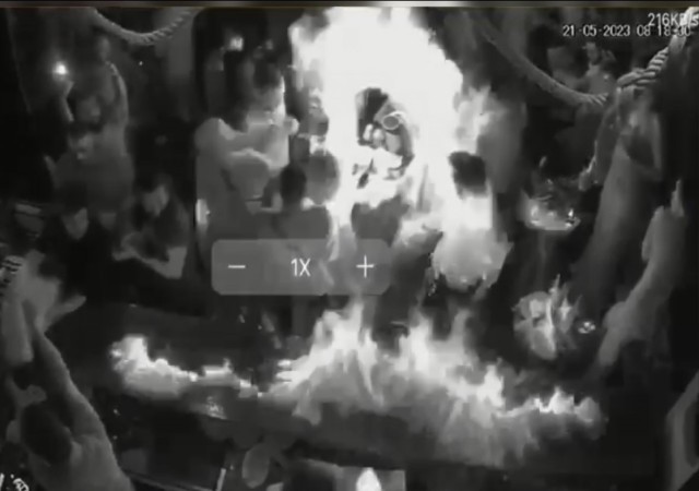 Kısa bir süre sonra ispirto dökülen alandaki alevler söndü, ancak aynı alan tekrar ispirto ile dolduruldu ve bu sefer alevler parladı. O sırada içeride eğlenen insanlar üzerine sıçrayan alevler nedeniyle alev aldılar. Dehşet anları ise cep telefonu kameraları tarafından kaydedildi.