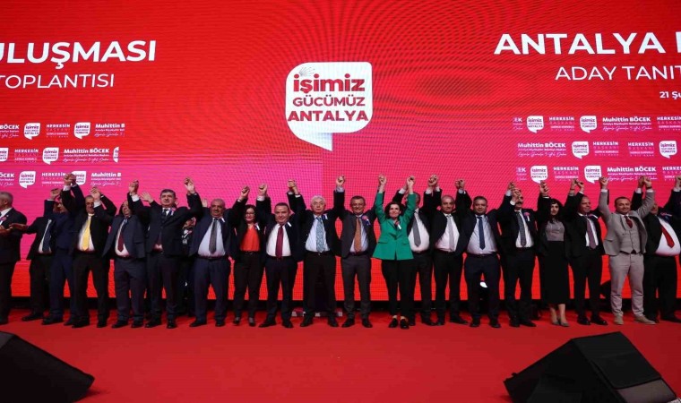 CHP Genel Başkanı Özgür Özel, Cam Piramit Fuar ve Kongre Merkezi’nde, Antalya Büyükşehir Belediye Başkanı ve adayı Muhittin Böcek’in ‘Herkesin Başkanı Azimle Gururla 5 Yıl Daha’ sloganıyla çıktığı yeni dönemde ‘Hizmette 5. Yıl ve Aday Tanıtım Toplantısı’na katıldı.