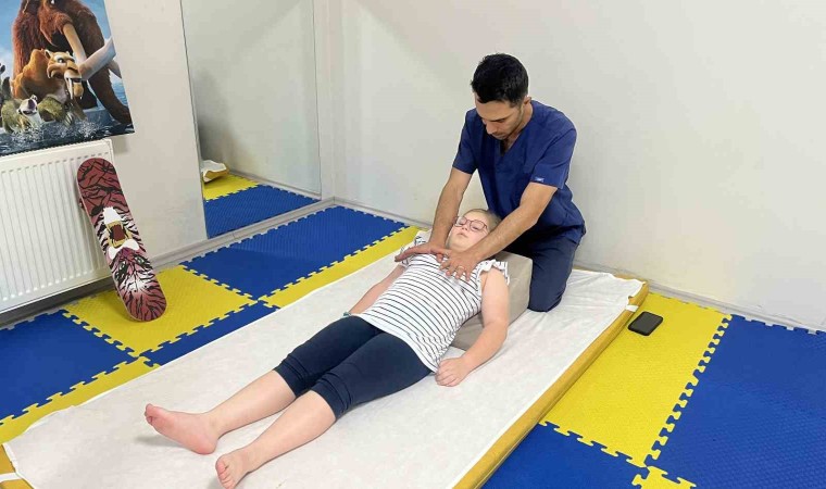 Eskişehir Fizyomer Terapia Fizik Tedavi ve Rehabilitasyon Tıp Merkezi’nde aldıkları tedavi sonucu kızlarının iyileşmeye başladığını belirten baba Vitalii Malenkova, şu ifadeleri kullandı: