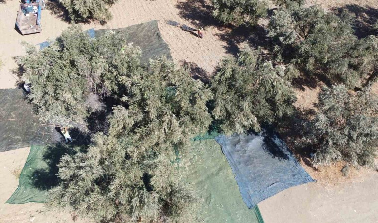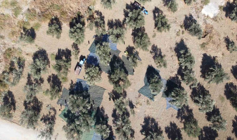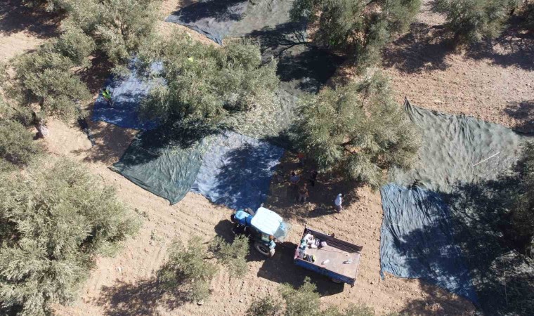Balıkesir’in Edremit Körfezi’nde zeytin hasadı tüm hızıyla devam ederken, Kazdağları’nın eteklerinde Edremit ilçesinde zeytin hasadı dron ile görüntülendi.