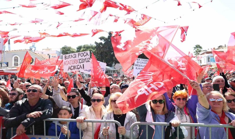 CHP Genel Başkanı Özgür Özel, Foça ilçesinde Nihat Dirim Barış ve Demokrasi Meydanı’nda vatandaşlara seslendi. Özel, partisinin Foça Belediye Başkan Adayı Saniye Bora Fıçı’yı tanıtarak, ilçenin ilk kadın belediye başkan adayı olduğunu belirtti. Konuşmasında hükümete yüklenen Özgür Özel, meydanda atılan “İnadına CHP inadına sol” sloganı üzerine de, “Evladım o mesajı mı verdik şimdi? Bu seçim sağ-sol seçimi değil, bu seçim iyi hizmet edecek bir yöneticiyi başa getirme seçimi. Bu seçim; pahalılıktan bıkmış, bıçak kemiğe dayanmış, yoksullaştırılmış milyonların hükümete isyan seçimi. Slogancıyı değiştirin” dedi.