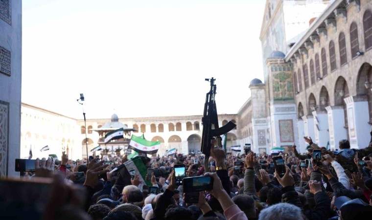 Suriye’nin başkenti Şam’da halk, Esad rejiminin devrilmesinin ardından ilk cuma namazını kılmak üzere tarihi Emevi Camii’ne akın etti. Binlerce kişi caminin avlusunda ve çevresinde saf tutarak cuma namazını kıldı. Suriyeliler, namazın ardından tekbirler getirerek ülkenin esaretten kurtuluşunu kutladı. Suriye’nin yeni bayrağının dalgalandığı cami avlusunda muhalif askerler de sloganlar eşliğinde ülkenin özgürleştiğini tüm dünyaya duyurdu.