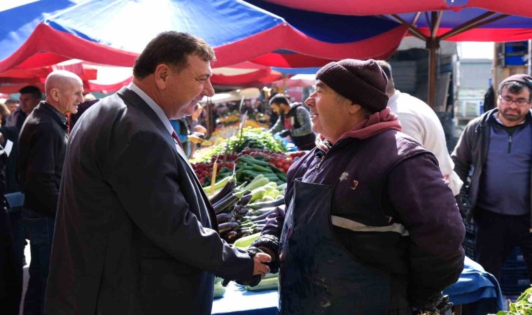 Özkan Alp pazar esnafı ile buluştuktan sonra Nilüfer Caddesi esnaflarını da ziyaret etti. Özkan Alp’e ziyaretleri sırasında Belediye Meclis Üyesi Adayları Mehmet Kepez ve Barış Toprak da eşlik etti.