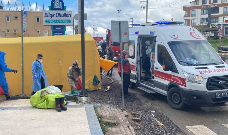 Olay, Darıca ilçesi Piri Reis Mahallesi Ulubey Sokakta meydana geldi. Edinilen bilgiye göre, bir kargo şubesinde pakette bulunan benzoil klorür isimli kimyasal madde sızıntı yaptı. Bunu fark eden çalışanlar hemen 112 Acil Çağrı Merkezine haber verdi. İhbar üzerine olay yerine UMKE, AFAD, sağlık, itfaiye, polis, kimyasal olaylara müdahale aracı ve zabıta ekipleri sevk edildi. Kısa sürede olay yerine gelen ekipler, etrafa zehirli gaz yayılma ihtimaline karşı geniş güvenlik önemleri aldı. Koruyucu kıyafetler ve oksijen maskeleri takan ekipler, içeride bulunan 12 çalışanı da dışarıya alarak sağlık ekiplerine teslim etti. Ekiplerce kurulan çadırda 12 çalışan dezenfekte edilerek tedbir amacıyla hastaneye kaldırıldı.