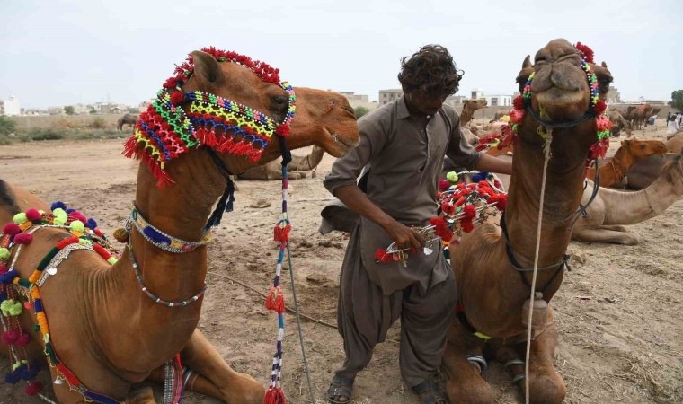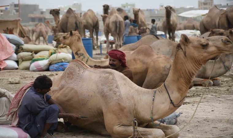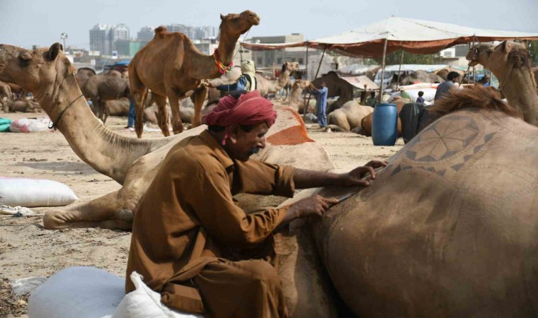 Pakistan’ın Sindh eyaletine bağlı Karaçi kentinde bulunan Asya’nın en büyük hayvan pazarında kurbanlık satışı sürüyor. Pazardaki develer her yıl olduğu gibi bu yıl da tüyleri farklı şekilde kesilerek geleneksel motiflerle süsleniyor. Bayrama sayılı günler kala pazara gelen ünlü deve berberi Hasan Ali, bir deveyi süslemek için yaklaşık 4 saatini harcıyor. Ali, bunun sadece gelir kaynağı değil, aynı zamanda bir tutku olduğunu belirtiyor.