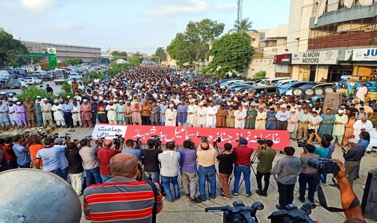 İran’da suikast sonucu öldürülen Hamas Siyasi Büro Başkanı İsmail Haniye için Pakistan’ın birçok kentinde gıyabi cenaze namazı kılındı.