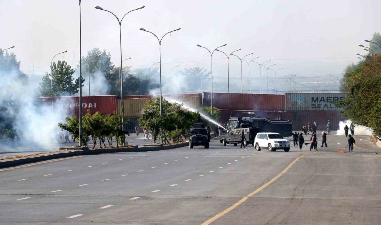 Pakistan’da geçtiğimiz yıl ağustos ayından bu yana cezaevinde bulunan eski Başbakanı Imran Khan’ın çağrısı üzerine düzenlenen gösteriler devam ediyor. Khan’ın serbest bırakılmasını talep eden protestocular, yasağa rağmen başkent İslamabad’da bugün yeniden sokaklara döküldü. Kente giriş çıkışlara yerleştirilen konteynerlerden oluşan bariyerleri aşan göstericiler, polisle çatıştı. Polisin göz yaşartıcı gazla müdahale ettiği olaylarda, çok sayıda gazetecinin de yaralandığı öğrenildi.