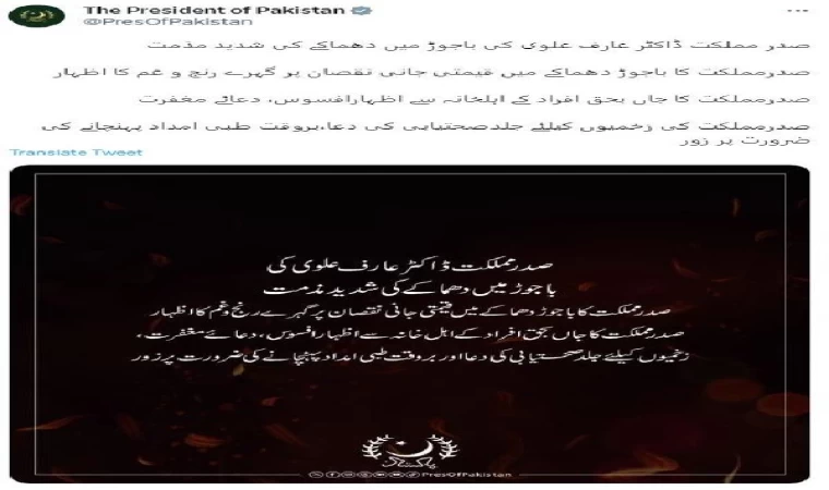 Saldırıya ilişkin Pakistan Devlet Başkanlığı’ndan yapılan açıklamada, “Başkan Arif Alvi Bajaur'daki patlamayı şiddetle kınadı. Alvi, Bajaur'daki patlamada değerli hayatların kaybedilmesinden duyduğu derin üzüntü ve kederi dile getirdi, ölenlerin ailelerine başsağlığı diledi. Başkanın yaralıların bir an önce iyileşmesi için dua ettiğini belirtti” denildi.