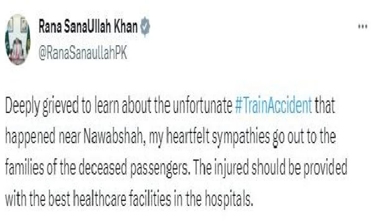 Pakistan İçişleri Bakanı Rana Sanaullah, sosyal medya hesabından yaptığı paylaşımda, “Navabşah yakınlarında meydana gelen talihsiz tren kazasını derin bir üzüntüyle öğrenmiş bulunuyorum. Ölen yolcuların ailelerine başsağlığı diliyorum. Yaralılara hastanelerde en iyi sağlık imkanları sağlanmalıdır” dedi.