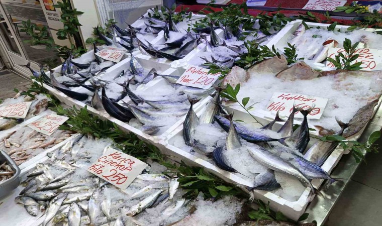 Öte yandan tezgahlarda deniz somonu 150, barbun 250, kanca çinakop 250, kaya mezgit 150, kalkan 500-600, deniz levreği 250, istavrit 100, kanca mezgit 300 ve sarı kanat çinakopun kilosu 350 liradan satılıyor.