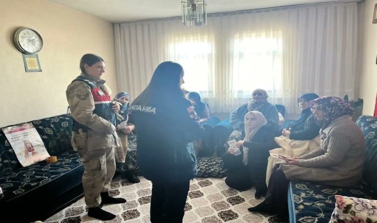 Palandöken Kaymakamlığı ve jandarma görevlileri Yukarı Yenice Köyü’nde kadınlara KADES uygulamasını anlattı.