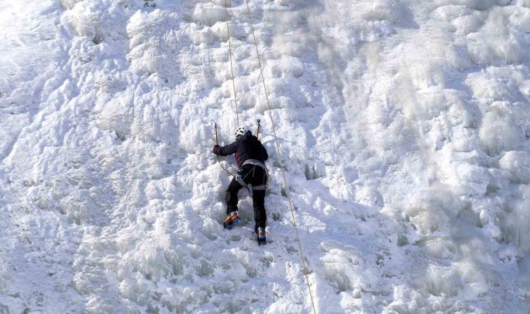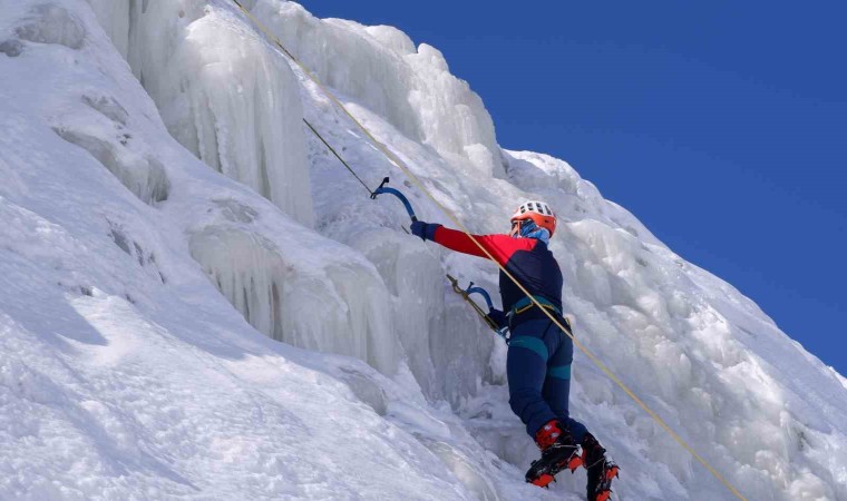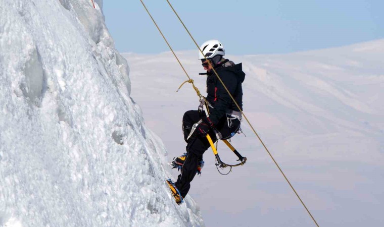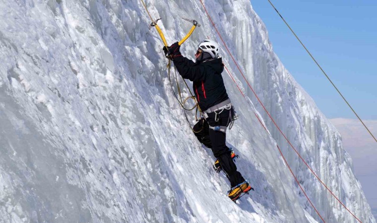 Dünyanın en uzun ve dik kayak pistlerine sahip olan Palandöken Kayak Merkezi’nde buz tırmanış duvarı meraklılarının ilgisini çekiyor.