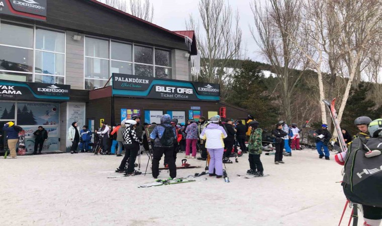 Hafta sonu tatilini Palandöken Kayak Merkezi’nde geçiren kayak severler yoğunluk oluşturdu.
