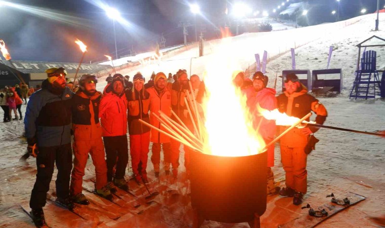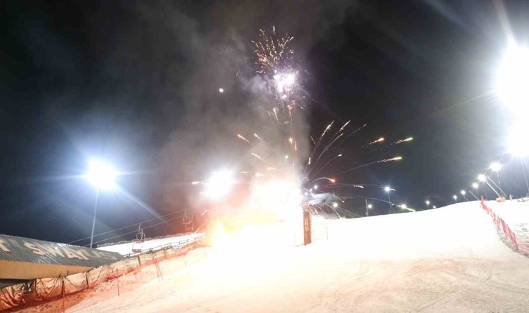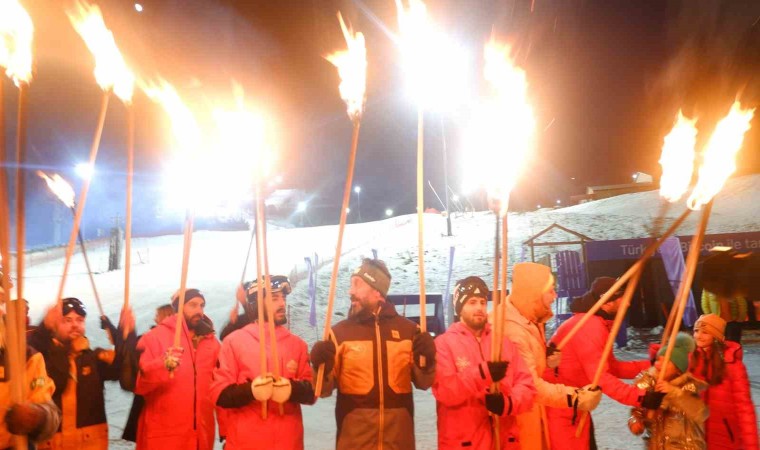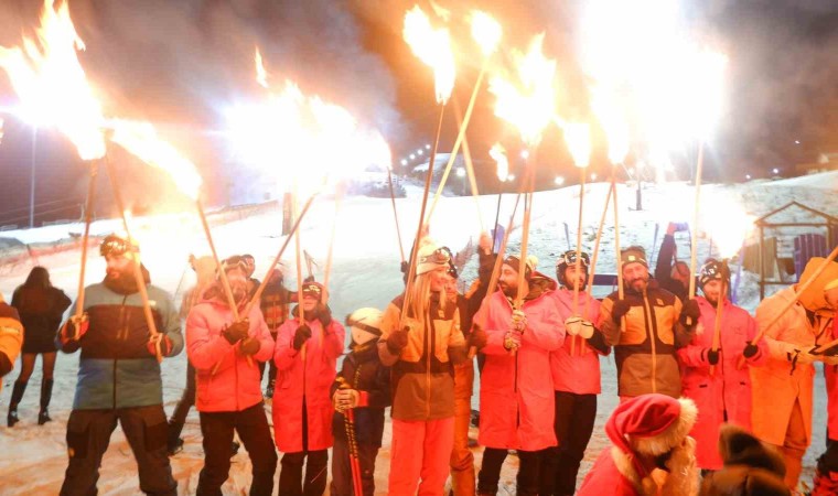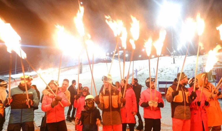 Kış turizminin gözde mekanlarından Erzurum Palandöken’e gelen tatilciler, yeni yıla meşaleli kayak gösterisiyle girdi.