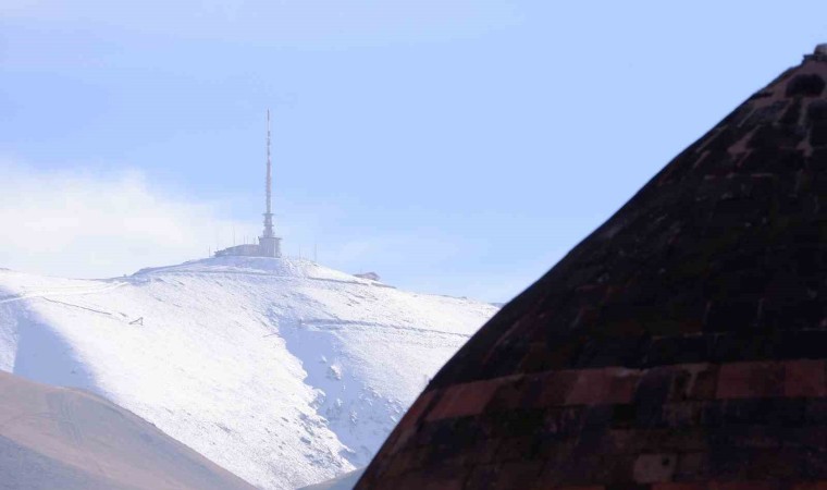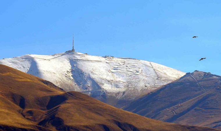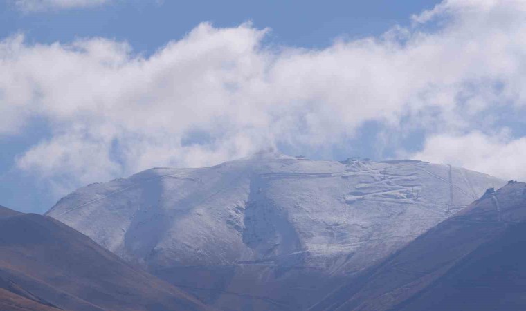 Türkiye’nin önemli kayak merkezlerinden Palandöken’in zirve noktası olarak bilinen Ejder Tepesi beyaza büründü.
