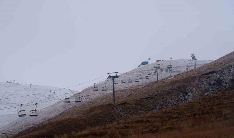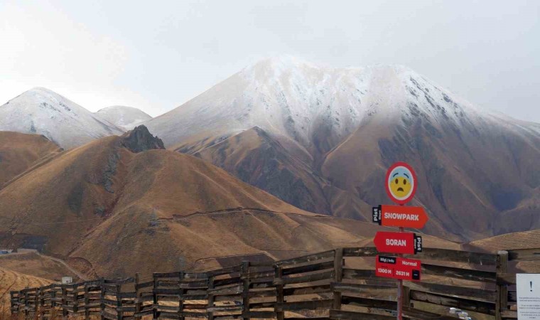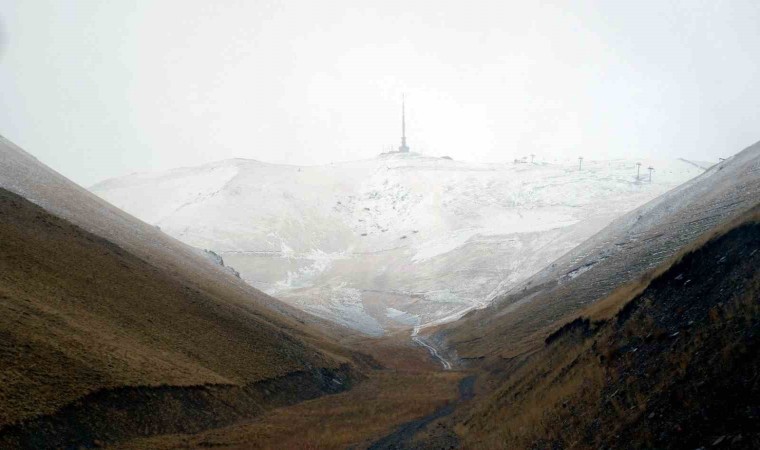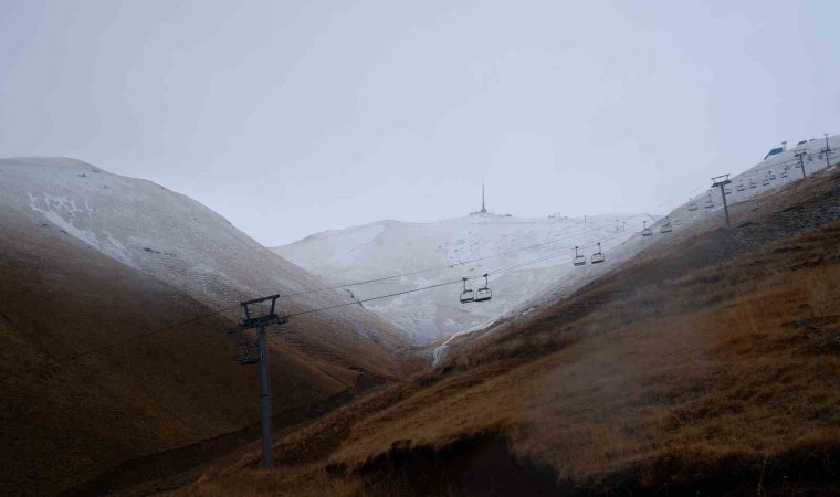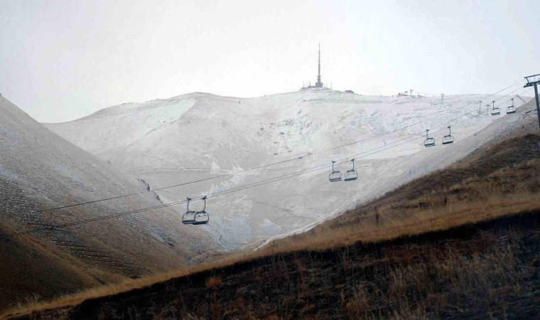 Türkiye’nin önemli kayak merkezlerinden Palandöken’in zirve noktası olarak bilinen Ejder Tepesi karla beyaza büründü.