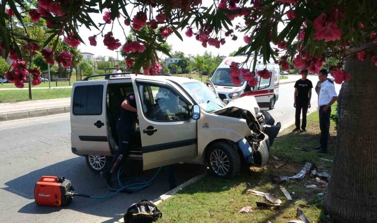 Antalya’nın Manavgat ilçesinde sürücüsünün direksiyon hakimiyetini kaybetmesi sonucu palmiyeye çarpan hafif ticari aracın sürücüsü yaralandı. Araçta sıkışan sürücü Manavgat İtfaiyesi kurtarma ekibinin uzun çabası sonucunda sıkıştığı yerden çıkarıldı.